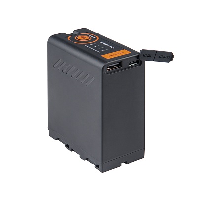 Аккумулятор может заряжаться с помощью зарядного устройства для Sony NP-F или от источника постоянного тока 5В 2А через USB-C. Количество циклов перезаряда не менее 300.