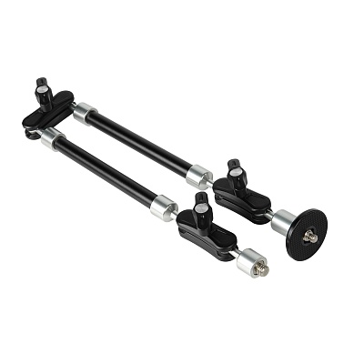 Magic Arm оснащен тремя независимыми двойными шаровыми шарнирами. Каждый шарнир имеет угол вращения 360° и наклон ±90°, а фиксация положения осуществляется тремя отдельными рукоятками. Общая длина кронштейна в развернутом состоянии достигает 600 мм, что позволяет выносить оборудование на значительное расстояние.