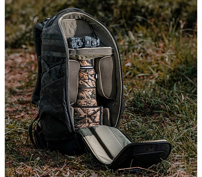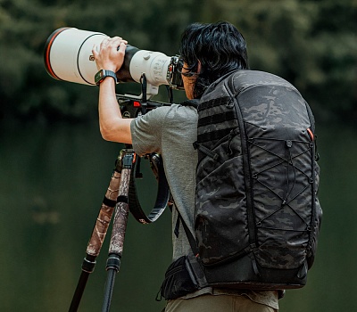 PGYTECH OnePro ST (Super Telephoto) – специальная версия рюкзака OnePro, предназначенная для сверхдлиннофокусных объективов. В него легко помещаются такие объективы как 600/4, 800/5.6, 1200/8 и другие крупные модели длиной до 56 см (вместе с камерой) и диаметром до 17.5 см. Внутреннее пространство организовано не совсем обычным образом: вместо множества перегородок здесь используется одна верхняя, с отверстием для объектива. Пара уплотненных съемных чехлов, в каждый из которых помещается пара объективов обычного размера (24-70/2.8, 85/1.4 и т.п.) или же вспышек, придерживают большой объектив по бокам. На дне располагается съемная мягкая панель и еще два боковых охватывающих уплотнителя. В итоге объектив получается надежно, плотно зафиксирован и не болтается при ходьбе. Передняя часть рюкзака откидывается на всю длину для удобства укладки, вы также можете лишь немного приоткрыть верх, чтобы вытащить камеру, когда рюкзак стоит вертикально.