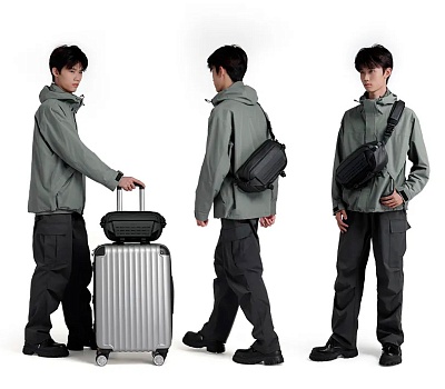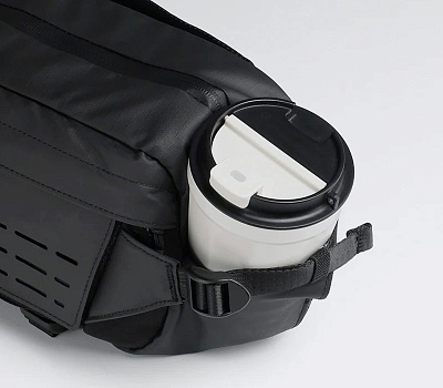 Панель с петлями типа Molle позволяет навешивать снаружи небольшие чехлы и украшения на карабинах. Ее также можно сложить в передний карман, под панелью находится широкая панель из велкро для крепления декоративных нашивок. По бокам сумки располагается пара карманов для бутылки воды, термостакана и тому подобных предметов. Потайной кармашек для трекера типа Apple AirTag поможет вам отследить и найти сумку в случае пропажи. Пара ремней, расположенных снизу, позволяют закрепить компактный штатив.