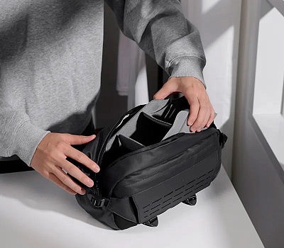 Городская сумка-слинг вмещает зеркальную или беззеркальную камеру с 2-3 объективами, а также может использоваться для ношения повседневных вещей (телефон, планшет, ключи, документы, наушники, снэки и так далее). Мягкий вспененный уплотнитель, вшитый в подкладку, защищает технику от случайных ударов. Внутреннее пространство можно разделить на 2 или 3 части с помощью съемного складного разделителя на липучках.