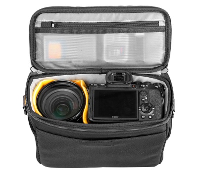 Внутрь помещается беззеркальная полнокадровая камера с установленным объективом (до 24-70/2.8 или 24-105/4) и еще один-два объектива или одна вспышка.
