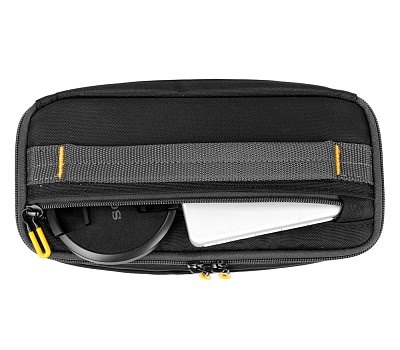 Сумка выполнена из плотной водостойкой синтетической ткани с внутренним амортизирующим наполнителем, который защищает технику от повреждений при случайных ударах или падениях.