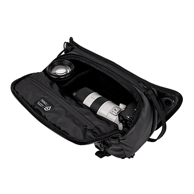 Сумка создана из прочных, устойчивых к непогоде материалов, которые защитят ваше снаряжение в любом походе. Специальная воздушная сетка на задней панели и мягкий регулируемый ремень обеспечивают комфорт даже при длительном ношении. Внутри вас ждет кастомизируемое пространство с мягкими разделителями, сетчатыми карманами и тремя специализированными слотами для SD-карт, а двойные бегунки на молниях с замком гарантируют сохранность вашего оборудования.