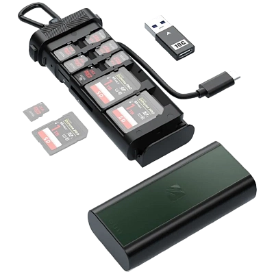 Duo Card Reader изготовлен из прочного алюминиевого сплава, что делает его портативным и долговечным для использования в пути. Устройство имеет слоты для 1 карты CF Express Type A, 1 CF Express Type B, 3 SD карт (UHS-I и II), 6 micro SD и 2 NANO SIM, обеспечивая универсальность и удовлетворяя потребности профессионалов. Freewell Duo поддерживает работу с Windows, MAC OS, Linux, Android и iPad OS, предоставляя простую функциональность plug-and-play без установки драйверов.