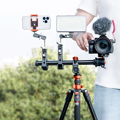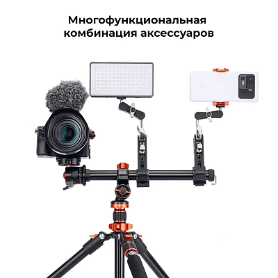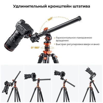 Универсальная центральная колонна K&F Concept спроектирована таким образом, чтобы ее можно было регулировать как по вертикали, так и по горизонтали. Она позволяет удерживать камеру на нужной высоте и под нужным углом столько, сколько вам нужно. Центральная колонна для штатива совместима практически со всеми камерами и шаровой головкой. Винт диаметром от 1/4″ до 3/8″ позволяет удобно закрепить шаровую головку или камеру на штанге штатива. Модель выдерживает нагрузку до 5 кг и имеет большой угол наклона. Конструкция выполнена из алюминия. Для получения баланса с одной стороны предусмотрен крюк для противовеса. Также вы сможете установить зажимы с различным оборудованием прямо на колонну.