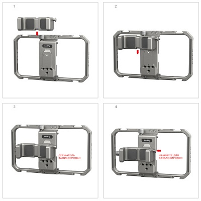2. Боковые ручки входящие в комплект совместимы только с клетками для смартфонов SmallRig.
