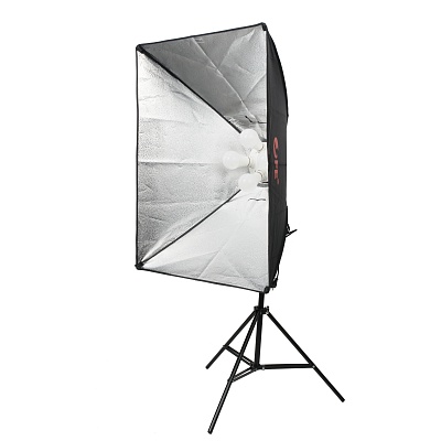 В комплект входит четырехламповый патрон-осветитель LH-E27х4 со светодиодными лампами ML-25 LED, съемный складной софтбокс 60х80 см и стойка для установки осветителей.
