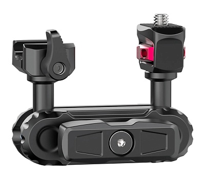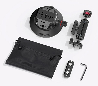 Шарнирный кронштейн устанавливается на присоску через переходник с планкой НАТО. Он позволяет свободно вращать и наклонять камеру для выбора оптимального положения. Присоска с верхней пластиной имеет резьбу 3/8"-16 и 1/4"-20 для различных вариантов крепления. Планка NATO крепится к пластине с помощью винтов 1/4"-20. «Волшебный» кронштейн имеет шаровые головки с поворотом на 360° с каждой стороны, крепление с винтом 1/4"-20 на одном конце и зажим NATO на другом конце для быстрого крепления и снятия.