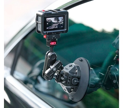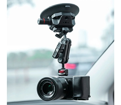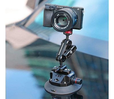 Крепление-присоска диаметром 11.5 см подходит для установки фотоаппаратов, видеокамер или вспомогательного оборудования. Может устанавливаться на любые гладкие и чистые поверхности: стекло, полированный металл, кафель, глянцевый пластик и так далее. Крепление выдерживает статические нагрузки 40 кг по вертикали или 60 кг по горизонтали, однако при съемке динамических сюжетов (например, при установке на автомобиль) рекомендуется не превышать вес 1 кг.