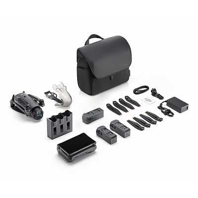 В комплект Creator Combo входит дрон Mavic 4 Pro с внутренней памятью 512 Гб, пульт ДУ DJI RC Pro 2, три интеллектуальных аккумулятора, четыре пары запасных пропеллеров, чехол для хранения, высокоскоростной кабель для передачи данных USB-C — USB-C, адаптер питания 240 Вт, плечевая сумка Mavic и концентратор для параллельной зарядки.