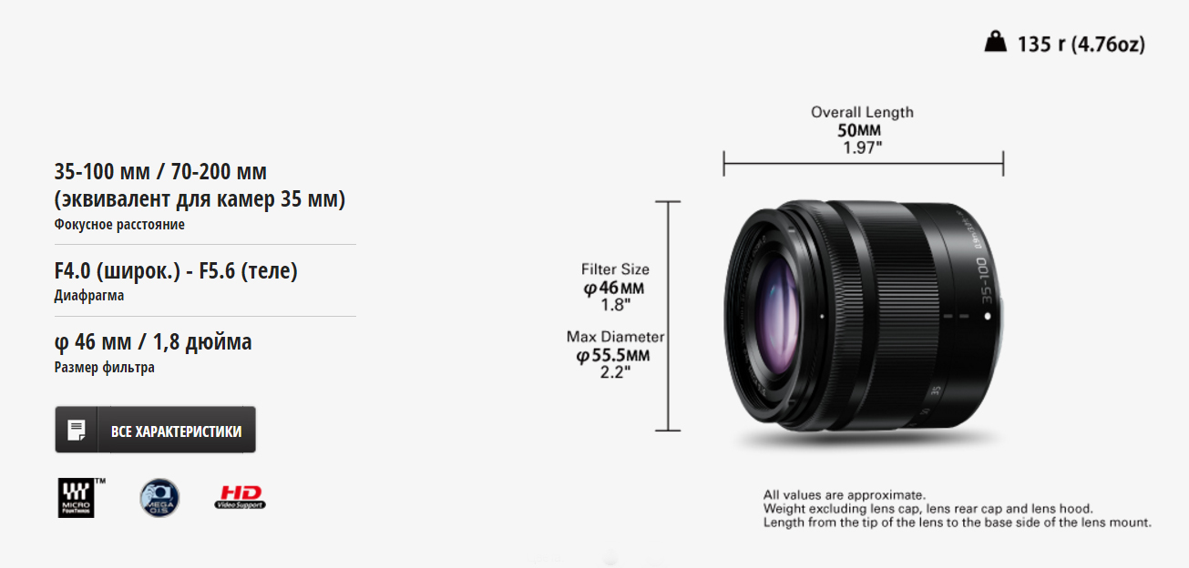 Объектив Panasonic Lumix G 35-100mm f/4.0-5.6 G Vario ASPH/Mega O.I.S. (H-FS35100E-S) Micro 4/3