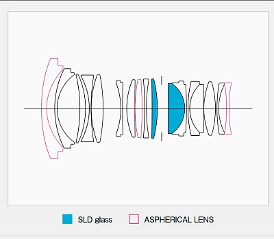 Корпус объектива выполнен из композитных материалов, как и у большинства других объективов Sigma, байонетное крепление латунное, присутствует защита от пыли и влаги. Выступ на передней части объектива сделан не случайно: многие пейзажные фотографы стали использовать универсальные USB-грелки для объективов, которые немного подогревают корпус для защиты от выпадения конденсата в холодные ночные часы. Выступ, соответственно, не дает такой грелке соскользнуть с объектива при его наклоне. Светофильтры можно устанавливать как спереди (резьба 82 мм), так и сзади: в комплекте идет металлический трафарет для того, чтобы вы могли самостоятельно вырезать листовой светофильтр нужного размера и формы. Многослойное просветляющее покрытие Super Multi-Layer Coating хорошо справляется с ореолами и бликами от контрового света, передняя линза также покрыта фторсодержащим покрытием, которое отталкивает капли воды и легко очищается от отпечатков пальцев.