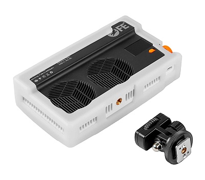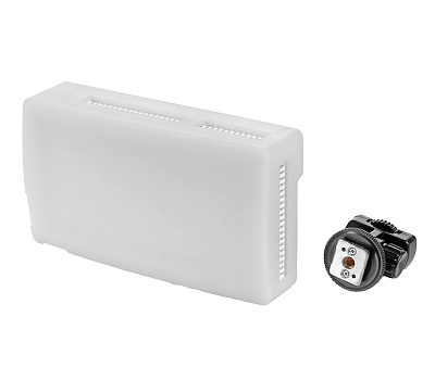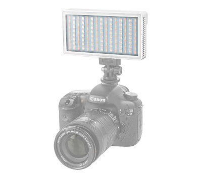 Осветитель можно закрепить на штативе через резьбу 1/4" или установить прямо на камеру с помощью комплектного наклонного кронштейна, оснащенного "холодным башмаком".