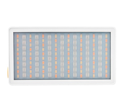 В основе осветителя — 152 высококачественных светодиодов, сочетающих теплые, холодные и RGB-элементы. Прибор сохраняет стабильный свет без мерцания на всех уровнях яркости, что важно при съемке с короткой выдержкой. На расстоянии 0.5 метра без диффузора прибор выдает 3500 люкс. Высокие показатели CRI и TLCI ≥97 гарантируют точную цветопередачу без искажений. Силиконовый рассеиватель в комплекте мягко рассеивает свет, устраняя резкие тени и создавая равномерное освещение.