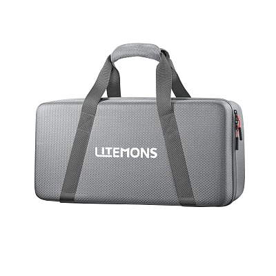 Осветитель поставляется в жесткой сумке, предназначенной для удобной транспортировки и безопасного хранения устройства вместе с аксессуарами. Внутри предусмотрены специальные ячейки, обеспечивающие надежную фиксацию оборудования во время выездных съемок. Боковые ремни удобно объединяются с помощью застежки-липучки, что облегчает перенос сумки.