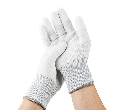 Перчатки изготовлены из эластичного и дышащего полиэстера для большего комфорта. В области пальцев антистатические перчатки покрыты полиуретаном для увеличения нажатия и усиления защиты.