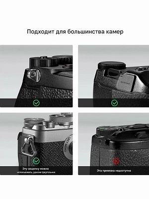 Ремень изготовлен из прочного высококачественного нейлона, устойчивого к истиранию и воздействию внешней среды. Поверхность легко очищается, что особенно удобно при съёмке на улице или в путешествиях. Элементы из натуральной кожи не только придают ремню премиальный вид, но и усиливают конструкцию в местах крепления — это сочетание надёжности и элегантности.