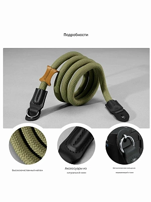 Ремень изготовлен из прочного высококачественного нейлона, устойчивого к истиранию и воздействию внешней среды. Поверхность легко очищается, что особенно удобно при съёмке на улице или в путешествиях. Элементы из натуральной кожи не только придают ремню премиальный вид, но и усиливают конструкцию в местах крепления — это сочетание надёжности и элегантности.