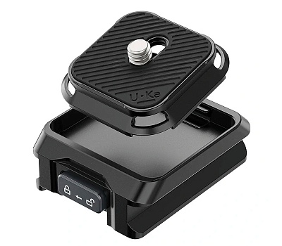 Быстросъемная штативная площадка, совместимая с быстросъемными креплениями стандарта Ulanzi UKA и Arca Swiss. Выполнена из алюминиевого сплава, резиновая накладка предотвращает вращение камеры. Прорези в углах площадки позволяют прикрепить к ним «якоря» Peak Design и других производителей. Винт из нержавеющей стали завинчивается монеткой, шлицевой отверткой или шестигранным ключом. Внимание: эта площадка несовместима с креплением Peak Design Capture.