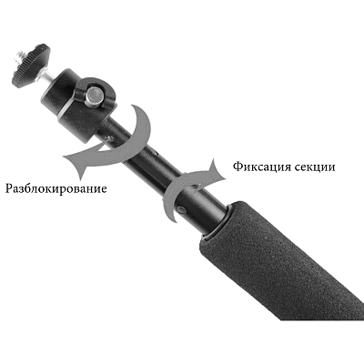 Наличие ремешка на запястье и рукоятка из вспененного полиуретана повышают безопасность использования и позволяют снимать даже в холодную погоду. Монопод комплектуется шарнирной головкой, поддерживающей функцию панорамирования и адаптером для экшн-камер GoPro.