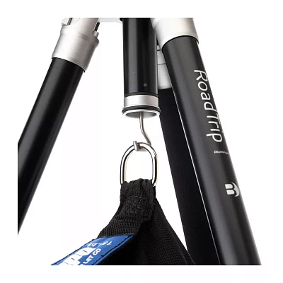 Для удобства использования штатива при любых погодных условиях на одной ноге имеется накладка из пеноматериала.В центральной колонне расположен утопленный подпружиненный крючок, который позволяет подвешивать груз для повышения устойчивости штатива, когда в этом есть необходимость.