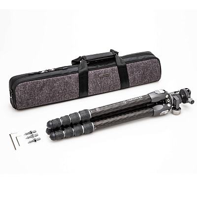 Отсутствие центральной колонны позволило добиться идеального баланса между надежностью и легкостью. В сложенном виде диаметр штатива составляет всего 8 см, что делает его чрезвычайно компактным и удобным для транспортировки хранения в рюкзаке.