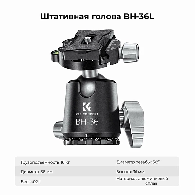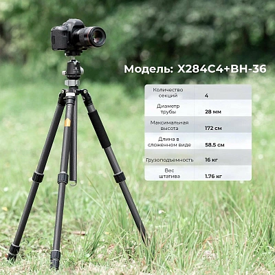 Штатив K&F Concept X284C4 + BH-36 KF09.117 (172см/16кг/1760г)