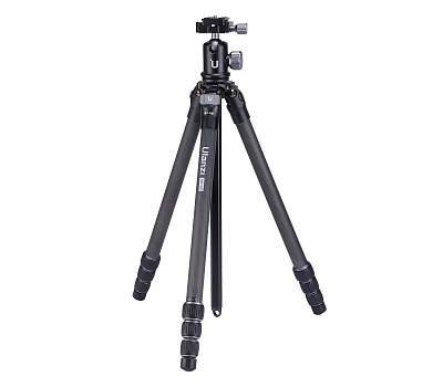 Компактный и легкий штатив для путешествий и пейзажной съемки. Ноги выполнены из многослойного углепластикового волокна (карбона), что обеспечивает минимальный вес при хорошей грузоподъемности (10 кг). Карбон также используется для снижения вибраций от поверхности. Одну из ножек штатива можно открутить и соединить с центральной колонной – получится монопод, который можно применять для съемки с нестандартных ракурсов, а также в качестве походной трости. Замки ног у этой модели цанговые.