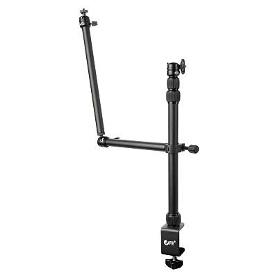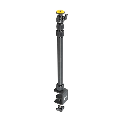 В комплект входят трехсекционная телескопическая штанга со струбциной, штанга с муфтой и удлинительная штанга, каждая из которых оснащена шаровой мини-головкой с винтом 1/4" для крепления следующей секции или студийного оборудования. Металлическая шаровая мини-головка помогает закрепить оборудование под углом до 90° и с поворотом на 360°. Струбцина зажимается на плоской поверхности толщиной до 50 мм. Хомут штанги дает возможность закрепить систему на стойках, штативах, перекладинах с диаметром трубы от 20 до 28 мм.
