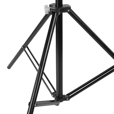 Телескопическая колонна стойки разделена на три секции большого диаметра, что позволяет значительно увеличить общую высоту без потери стабильности и жесткости конструкции. Прочные полимерные зажимы надежно фиксируют каждый сегмент, защищая механизмы от износа и обеспечивая плавное движение секций.