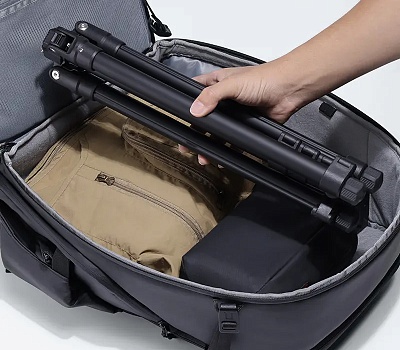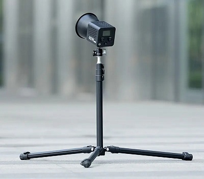 Компактная стойка для студийного оборудования. В сложенном состоянии ее длина составляет всего 43 см, что позволяет переносить ее внутри практически любого рюкзака и во многих фотосумках. При небольшом собственном весе (825 г) стойка выдерживает нагрузку до 6 кг, поэтому может использоваться даже с достаточно тяжелыми осветителями. Центральная колонна состоит из 4 секций, ноги – из 2, в сложенном положении ноги как бы охватывают центральную колонну для максимальной компактности. Каждая нога индивидуально разводится в одно из 3 фиксированных положений и регулируется по длине – это дает возможность установить стойку на неровных поверхностях и даже на лестницах.