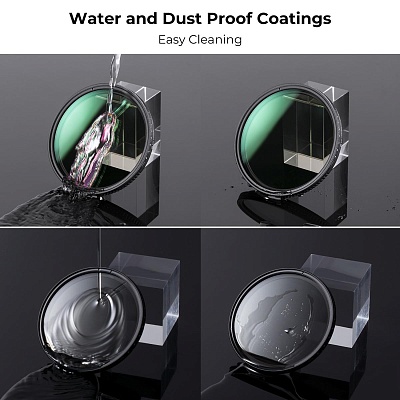 Чистоту кадра и высокое качество изображения обеспечивает многослойная структура линзы. Специальное нанометровое покрытие K&F Concept уменьшает количество бликов, а также поверхность фильтра устойчива к царапинам и потёртостям, что гарантирует долговечность и надежность. Для смены плотности необходимо лишь повернуть основное кольцо и подобрать необходимое значение