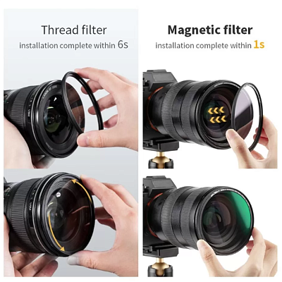 Новейшая серия светофильтров от K&F Concept получила популярное магнитное крепление, благодаря чему установка линзы стала быстрой и удобной. Больше не нужно каждый раз долго накручивать фильтр на объектив, тратя драгоценное время творчества. Большим плюсом стала добавленная в комплект крышка, поставить которую можно также быстро