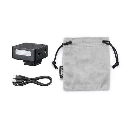 Для подзарядки используется кабель USB Type-C, поэтому заряжать вспышку можно от сети с помощью адаптера (приобретается отдельно), от ноутбука или внешнего аккумулятора. Полная зарядка батареи занимает примерно 70 минут.