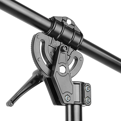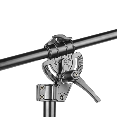 Стрела LSB-190H состоит из двух секций с пружинной амортизацией для плавного и точного позиционирования оборудования. Механизм наклона с фиксирующим рычагом позволяет устанавливать угол от -140° до 170°. Выдвижная конструкция длиной 120-214 см обеспечивает точное расположение камеры над объектом съемки без попадания стойки в кадр.
