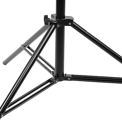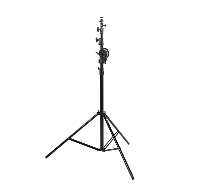 Двухсекционная стальная телескопическая стойка обеспечивает рабочую высоту до 190 см. Секции оснащены пружинной амортизацией, которая обеспечивает плавное и безопасное опускание оборудования при ослаблении винтовых зажимов. Широкое основание с размахом 120 см гарантирует устойчивость конструкции. Для работы в сложных условиях при максимальном вылете стрелы или на ветру можно дополнительно усилить основание стойки дополнительным грузом, например, заполненным .