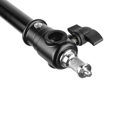 На перекладине установлен съемный двусторонний шпигот 16 мм с резьбами 1/4” и 3/8”, а также шаровая мини-головка. Штифт можно установить как вдоль, так и поперек журавля в одно из отверстий на конце перекладины, что расширяет варианты крепления оборудования.