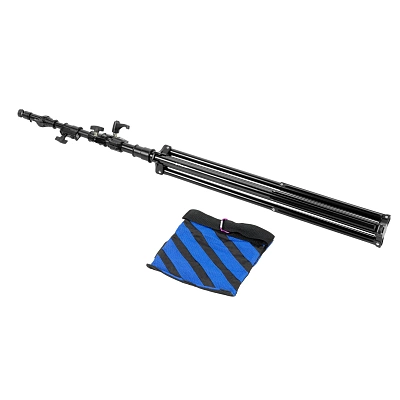В комплектацию входит мешок для песка, выполняющий функцию груза-противовеса. Мешок крепится на основание стрелы, и его можно наполнить на месте съемки любым сыпучим материалом для обеспечения дополнительной устойчивости при максимальном выдвижении перекладины.